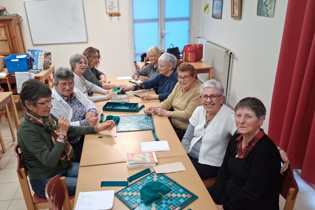 Nous sommes une petite équipe. Nous nous rencontrons tous les samedis pour jouer au scrabble. Nous apprenons beaucoup les unes des autres et avançons dans la connaissance du jeu dans la convivialité et sans enjeu.
